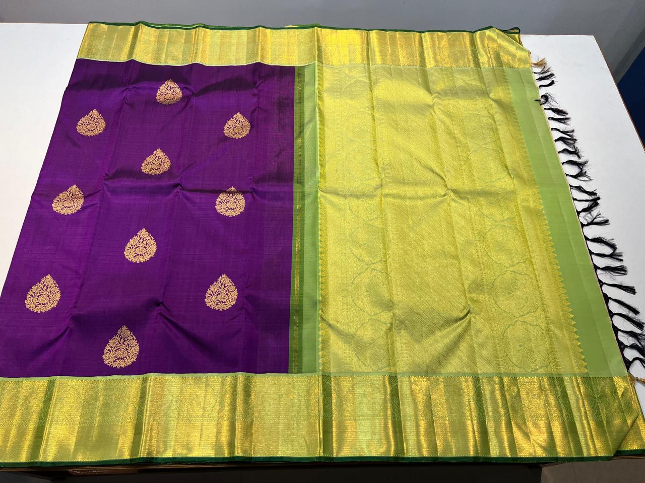 VOILET/PASTEL GREEN COLOUR COMBINITION KANCHI SILK SAREE