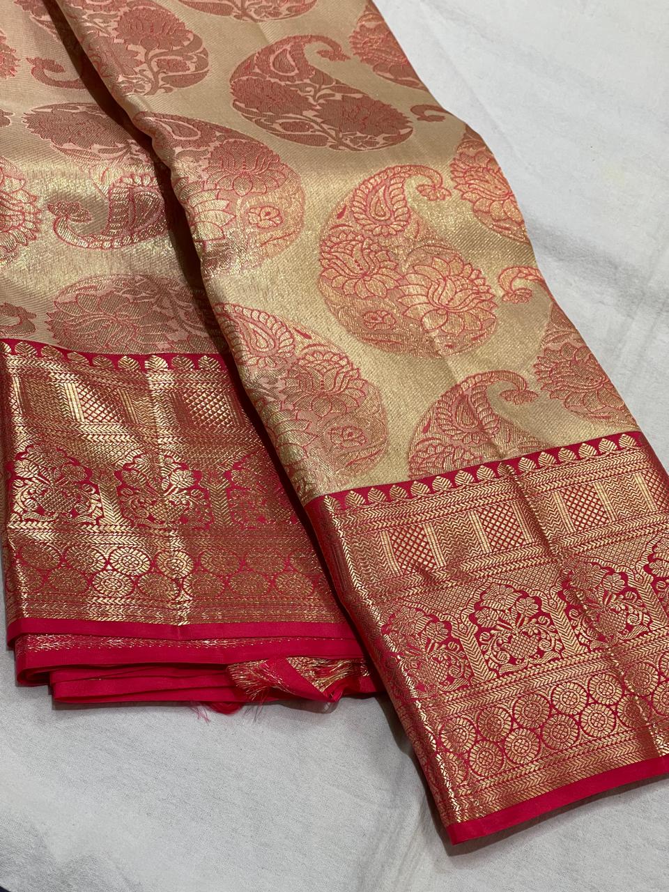 RED/GOLD  BORDER COLOUR COMBITION PURE KANCHI SILK SAREE