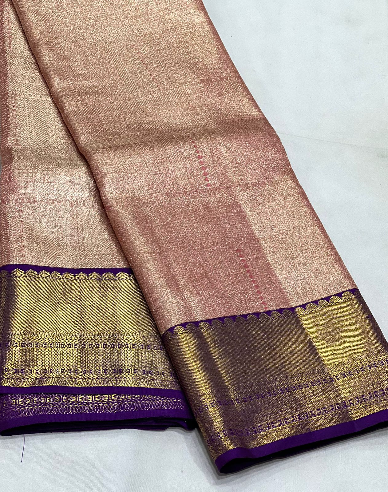 PEACH/VOILET   COLOUR COMBITION PURE KANCHI SILK SAREE