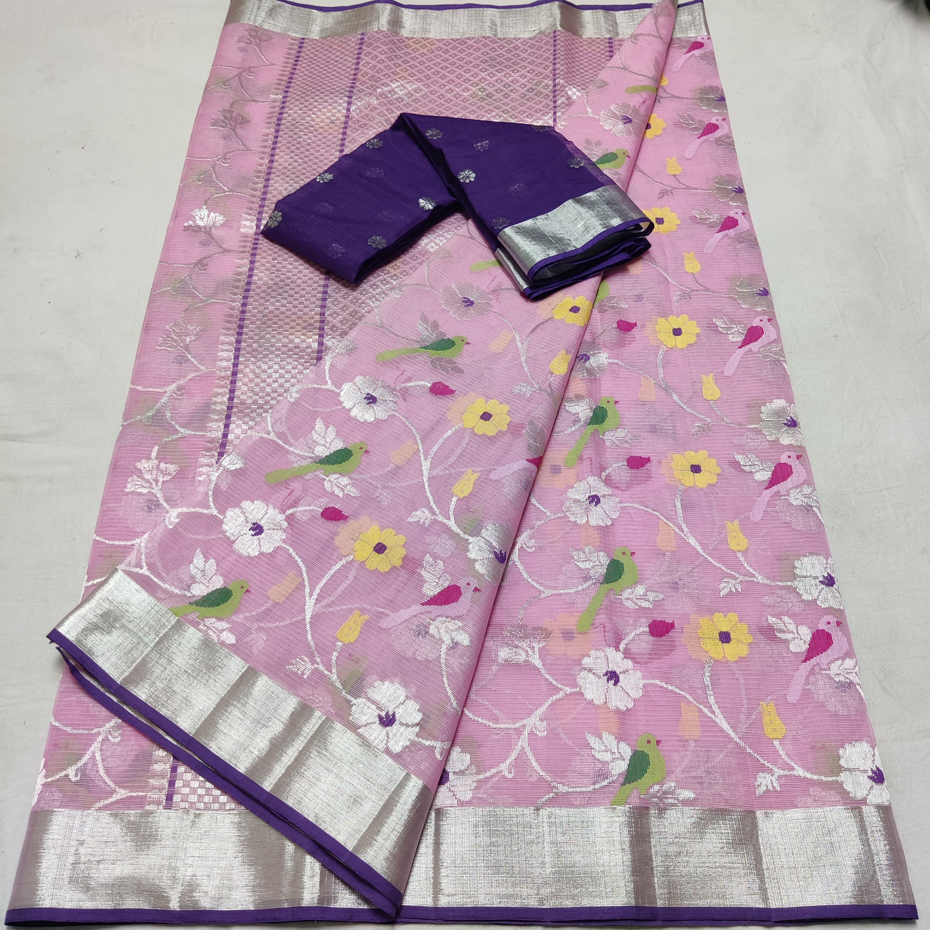 BABY PINK/ VOILET ZARI KOTA SAREE