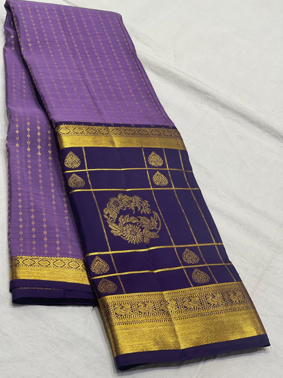 LAVENDER/VOILET  COMBITION PURE KANCHI SILK SAREE