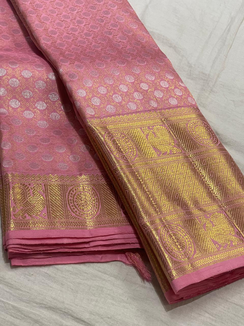 PEACH COLOUR COMBITION PURE KANCHI SILK SAREE