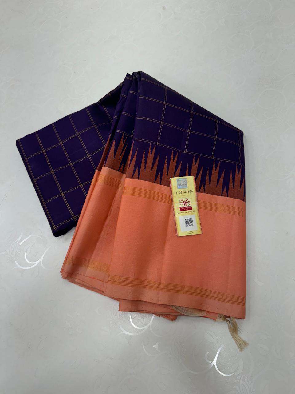 Traditional Korvai borders both side with temple woven and all over saree zari checks with rich pallu and blouse