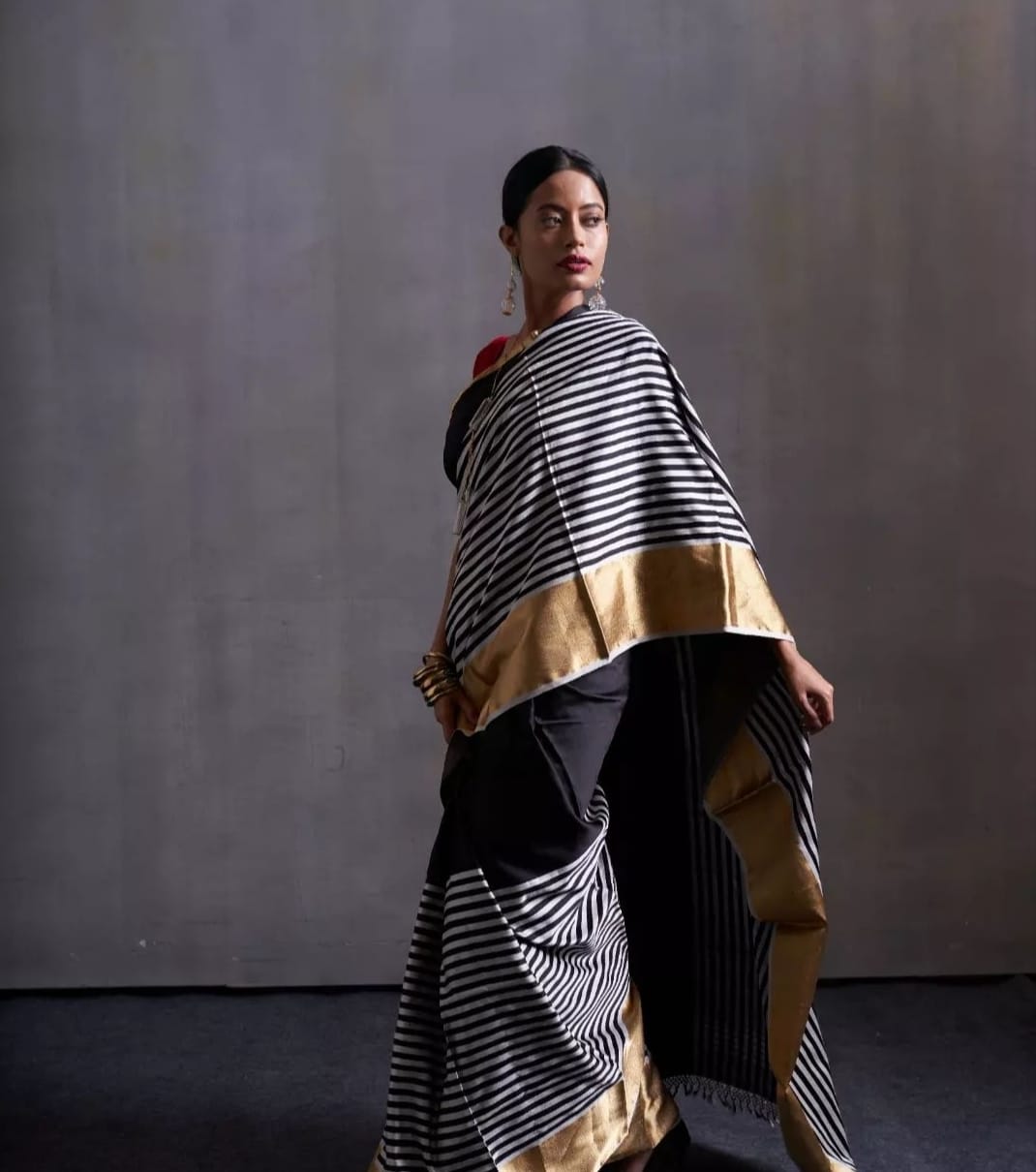 BLACK / WHITE CHANDERI SAREE
