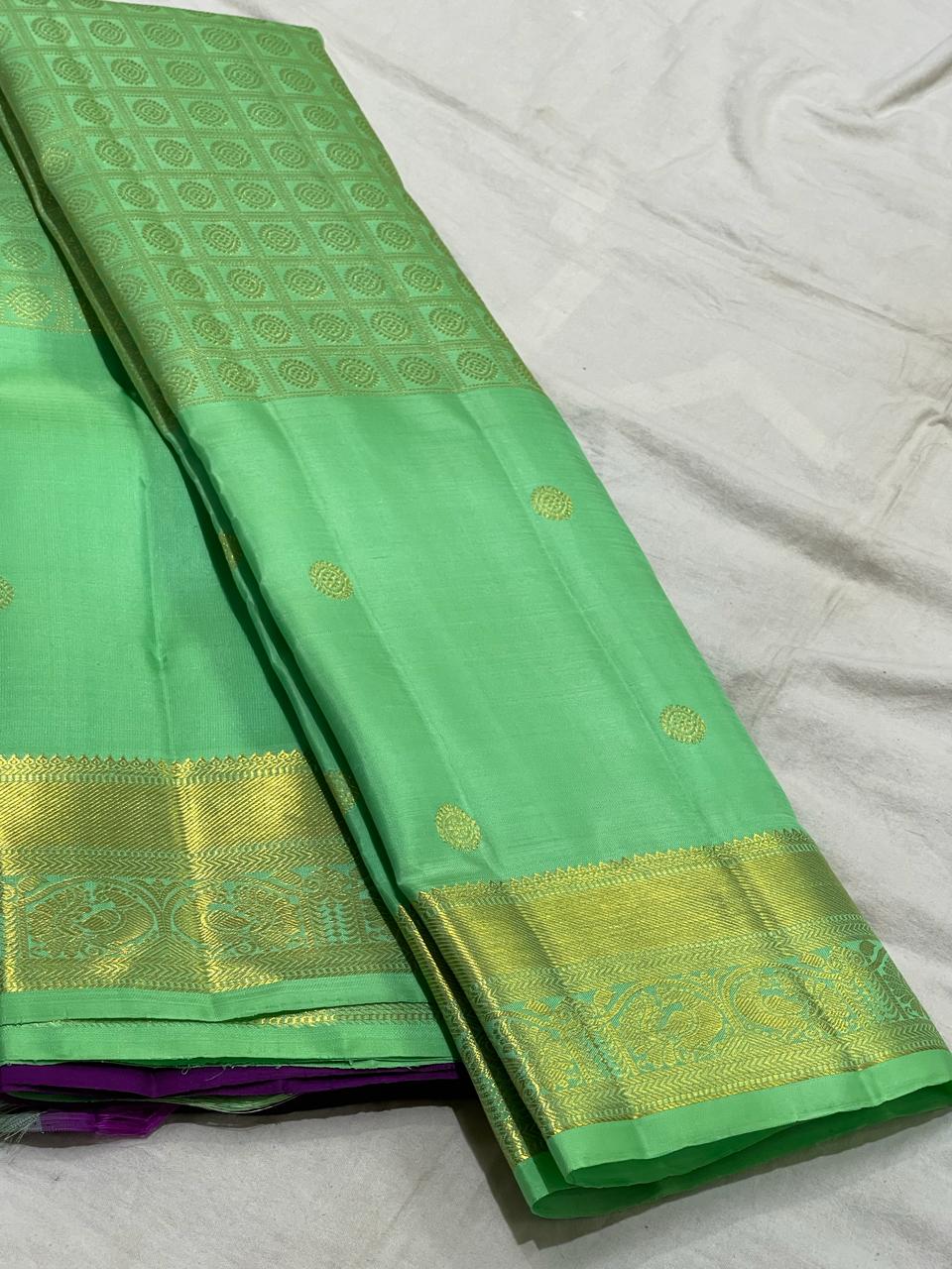 GREEN/VOILET  COLOUR PURE KANCHI SILK SAREE