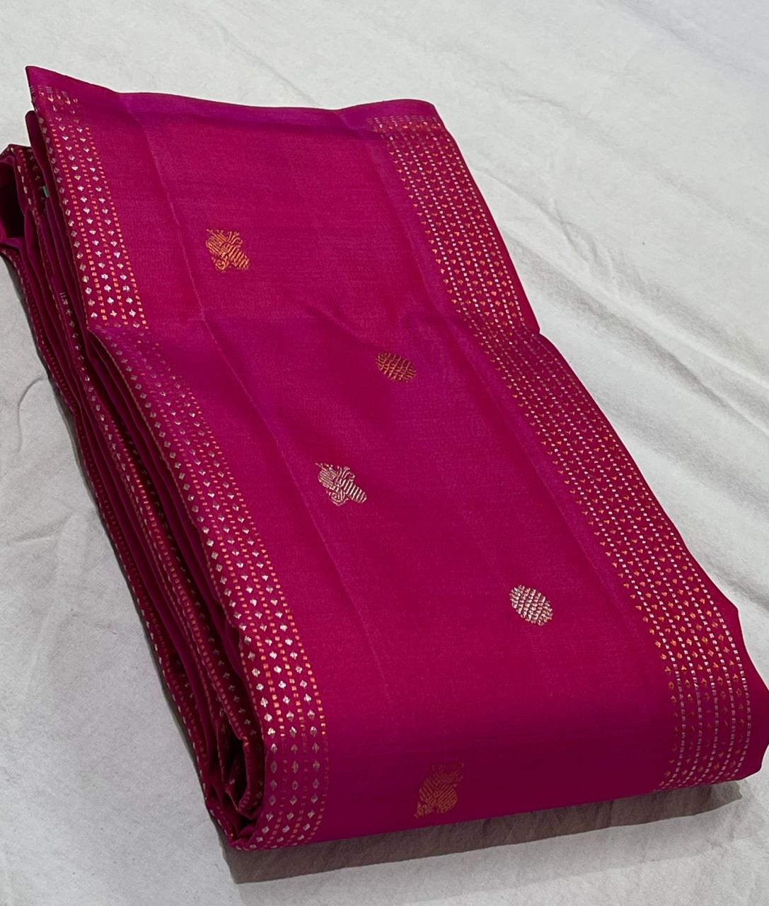 PINK /BLUE BOARDERLESS KANCHI SAREE