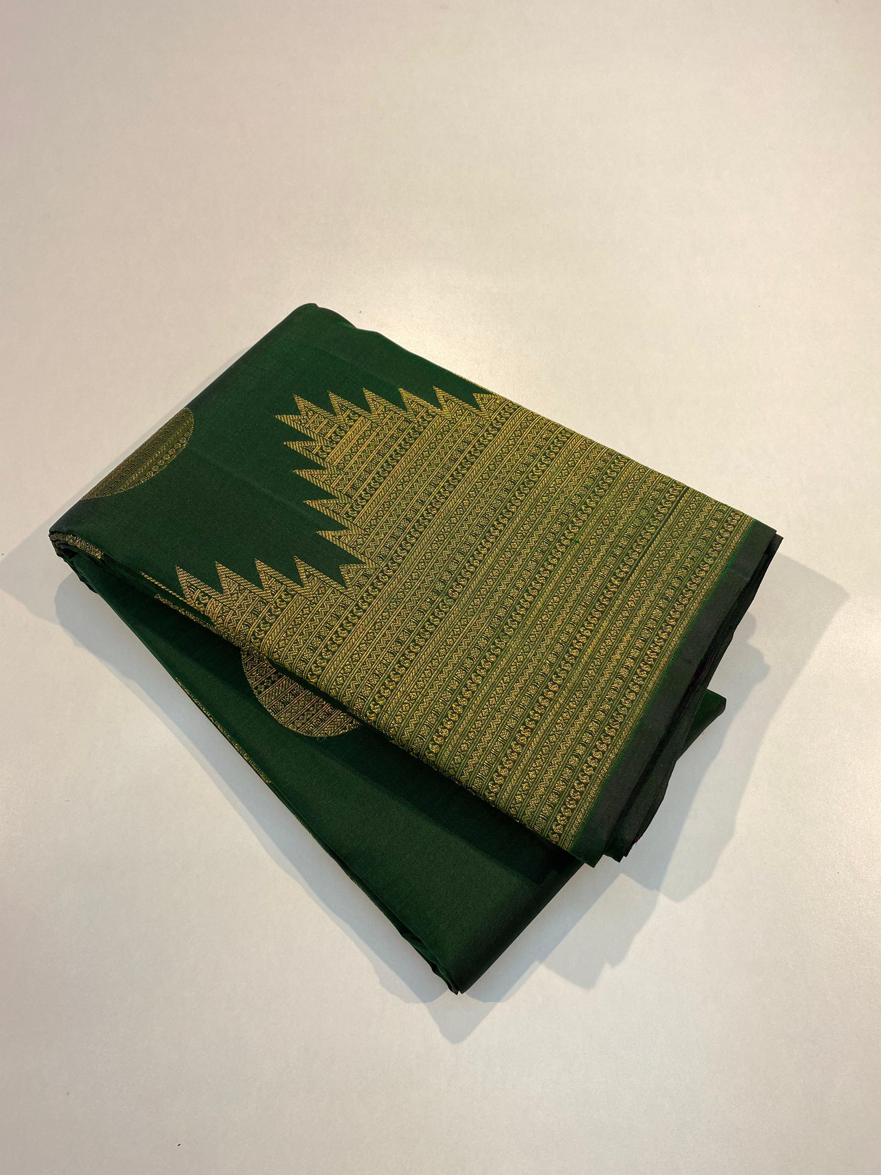 BOTTLE GREEN COLOUR  ZARI BORDER COMBITION PURE KANCHI SILK SAREE (Copy)