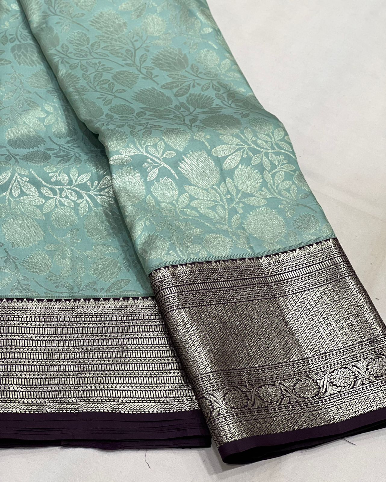 SEA GREEN/BLACK COLOUR COMBITION PURE KANCHI SILK SAREE
