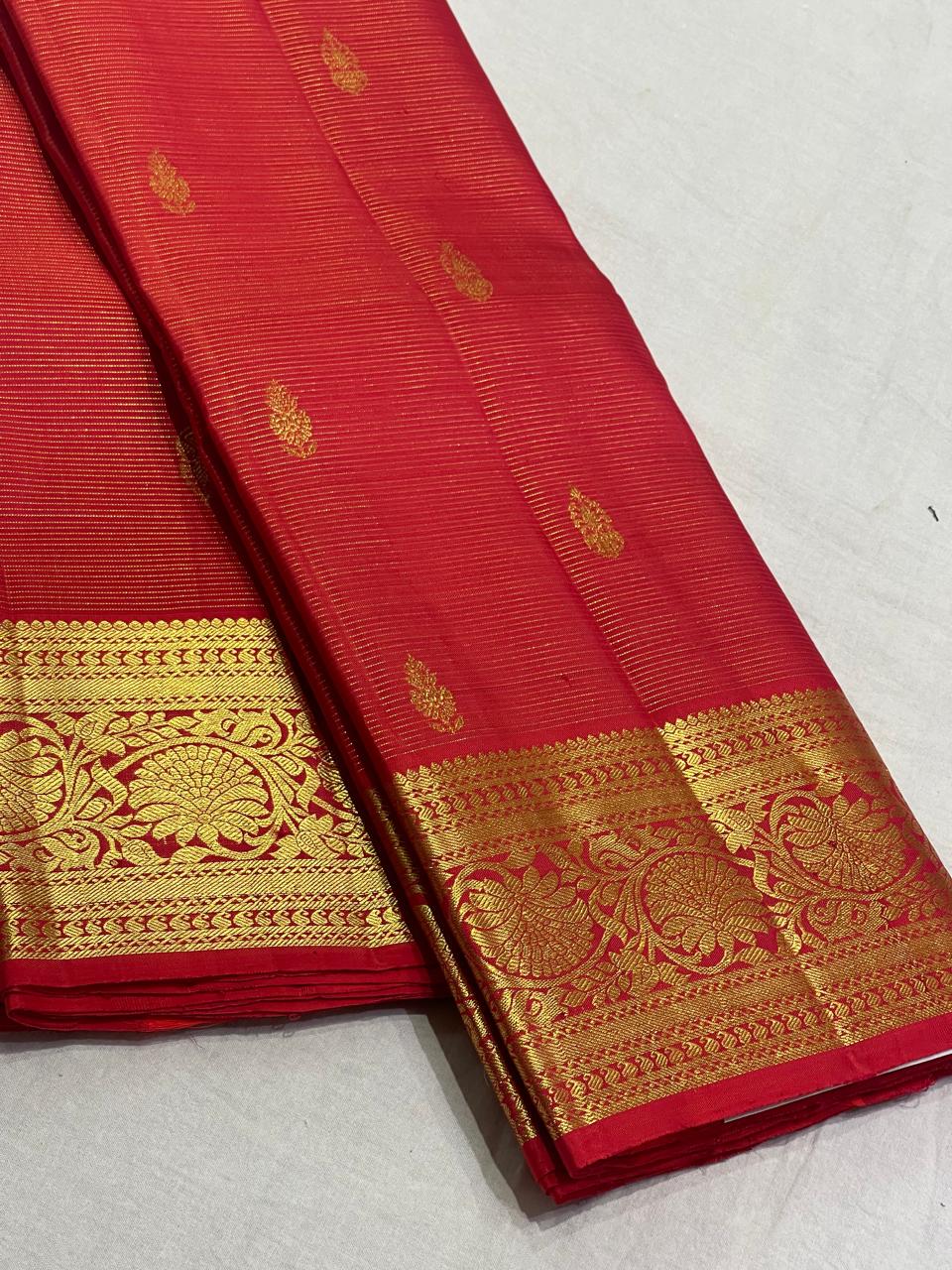 CHILLI RED COMBITION PURE KANCHI SILK SAREE