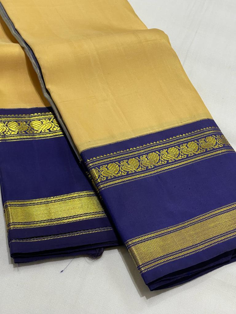 CREAM/NAVY BLUE COMBITION PURE KANCHI SILK SAREE