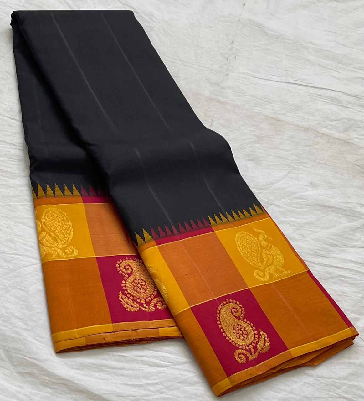 BLACK/RED  COLOUR COMBITION PURE KANCHI SILK SAREE