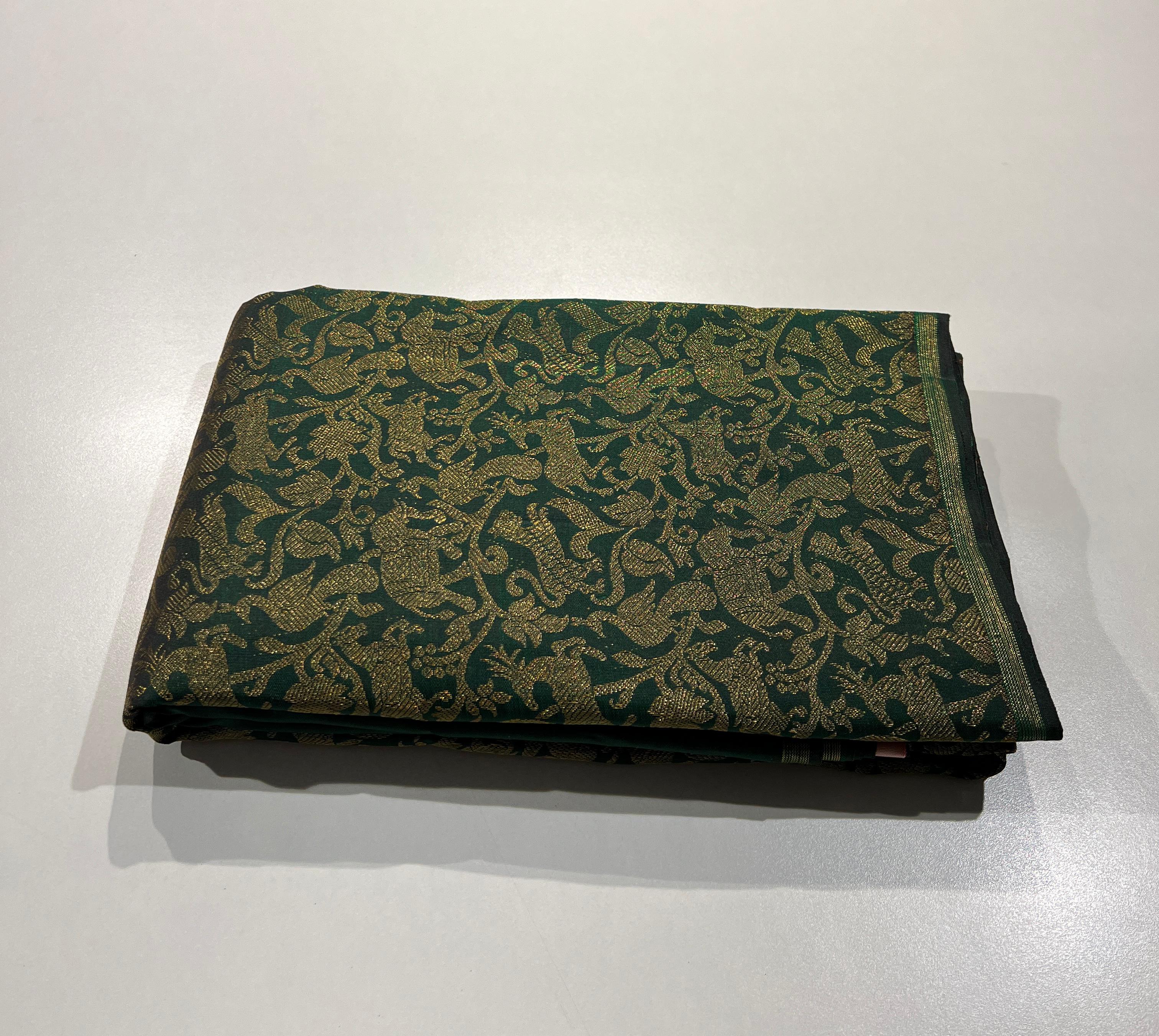 BOTTLE GREEN AND PASTEL PINK COLOUR PURE KANCHI SILK SAREE