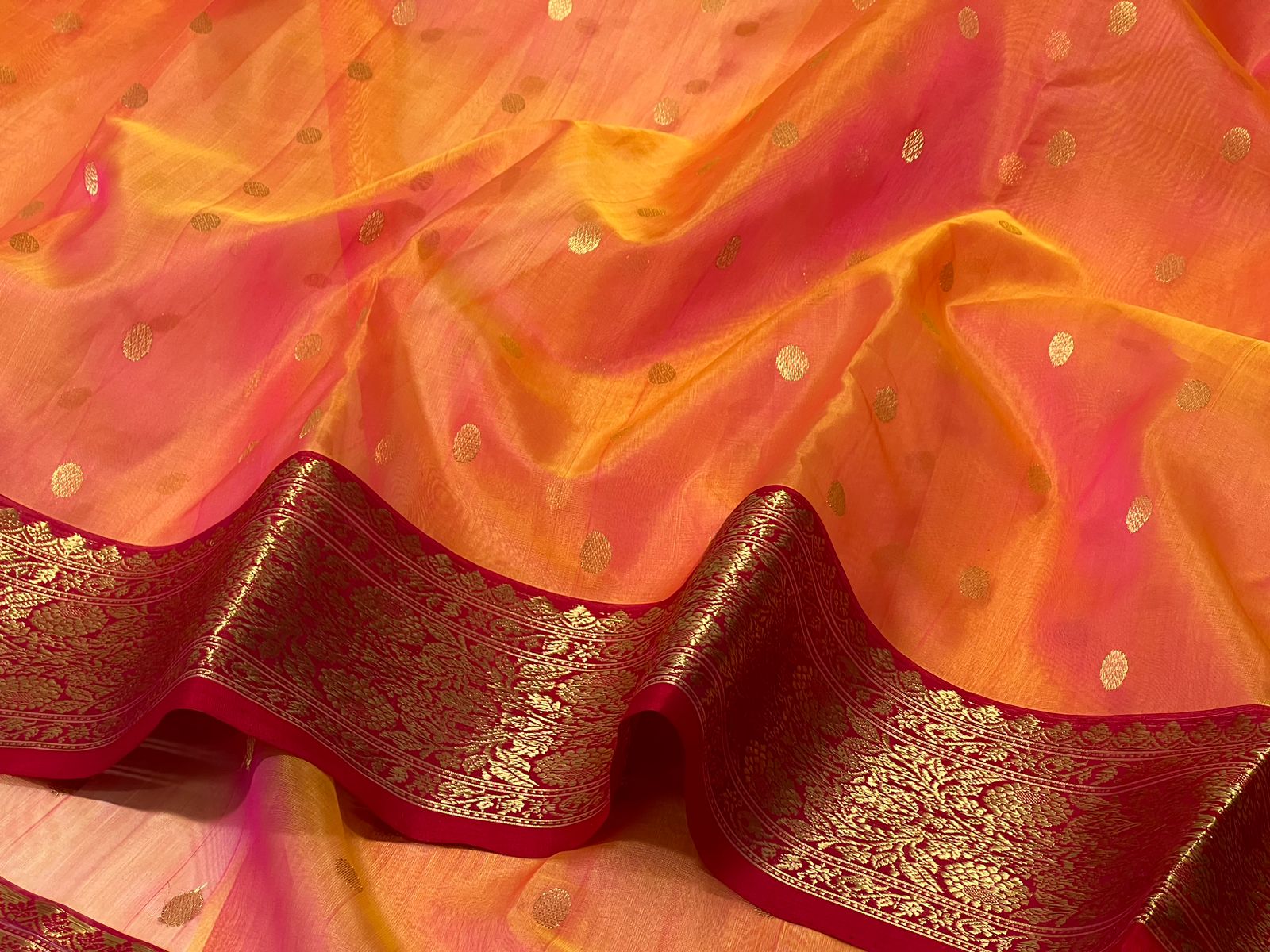 ORANGE RED CHANDERI SAREE