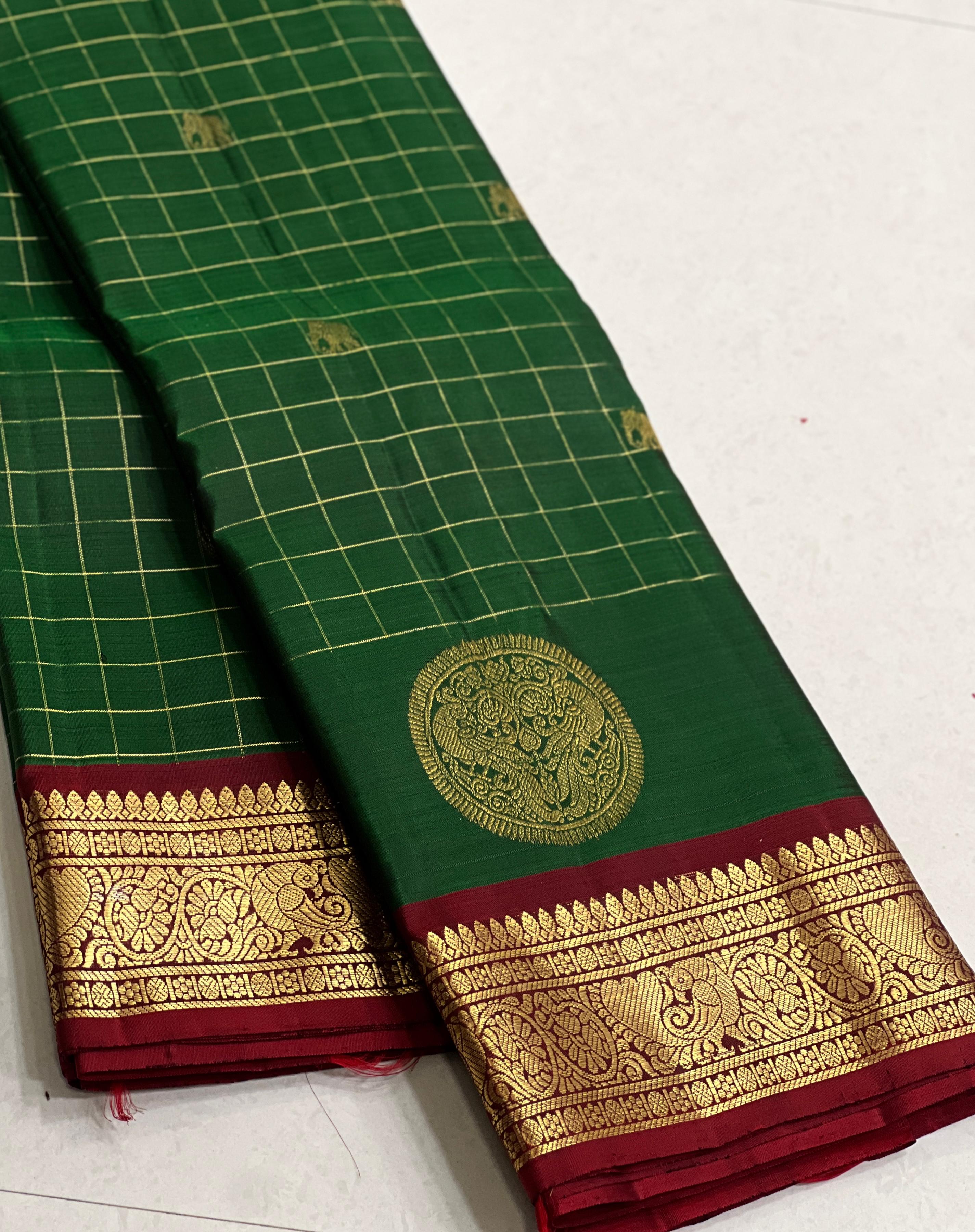 BOTTLE GREEN/MAROON COLOUR COMBITION PURE KANCHI SILK SAREE