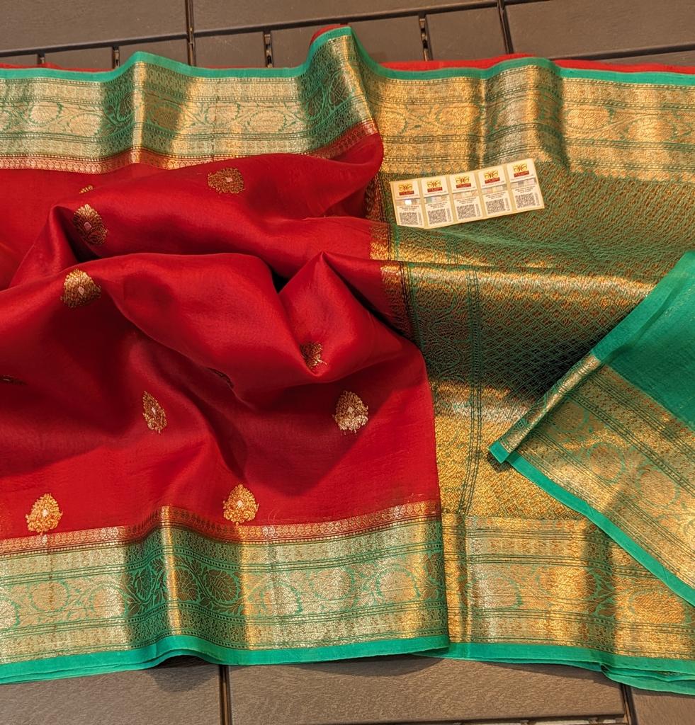 Kora organza *Pure Handloom bana kora*Silk saree with antique zari rich Pallu*Blouse with Border*Smooth & soft fabric*With...
