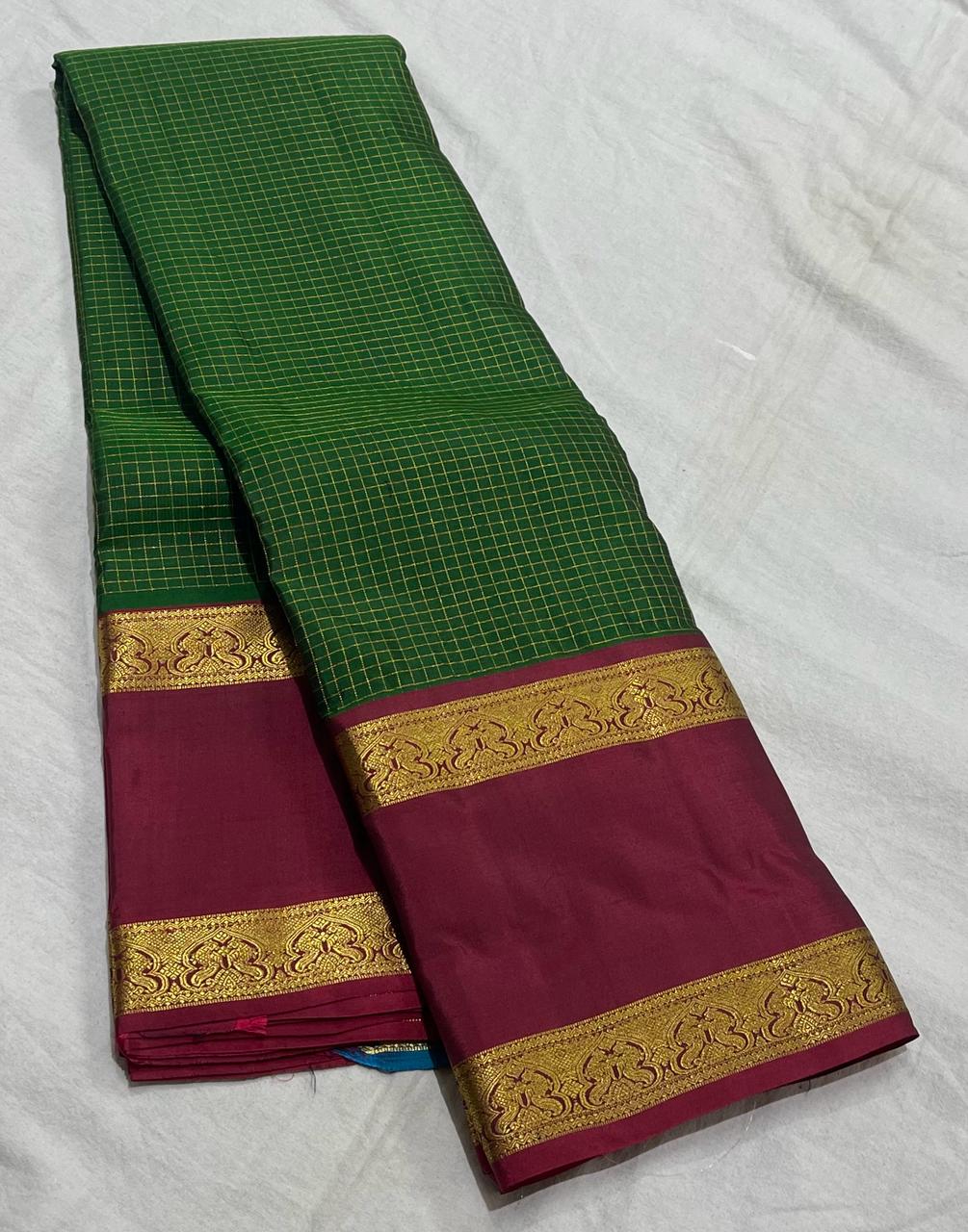 BOTTLE GREEN / RED KANCHI SILK SAREE