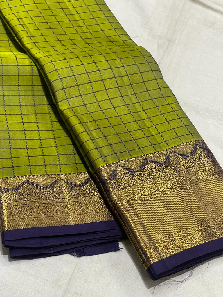 MUSTURD GREEN / NAVY BLUE KANCHI SAREE