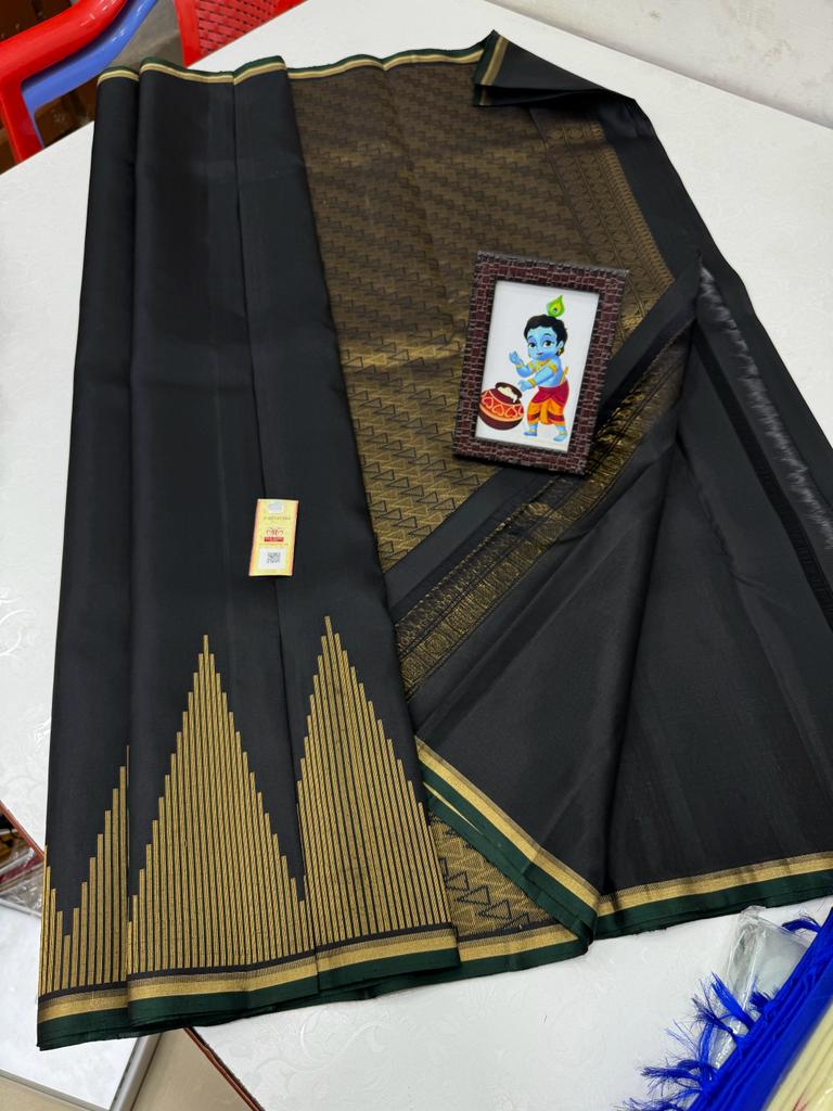 BLACK TEMPLE BOARDER KANCHI SILK SAREE