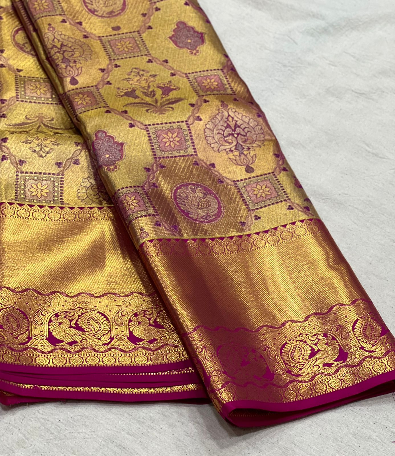 100 % pure Kanchipuram handloom silk saree with silk mark tag 2G ++ pure zari quality ...