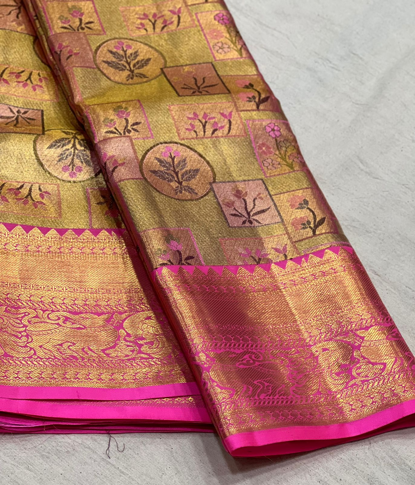 GOLD / PINK KANCHI TISSUE SAREE