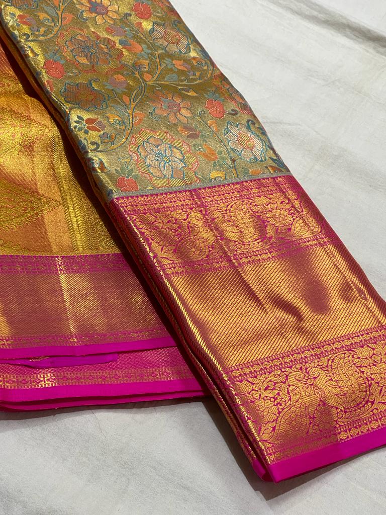GOLD FLORAL / PINK KANCHI TISSUE SAREE