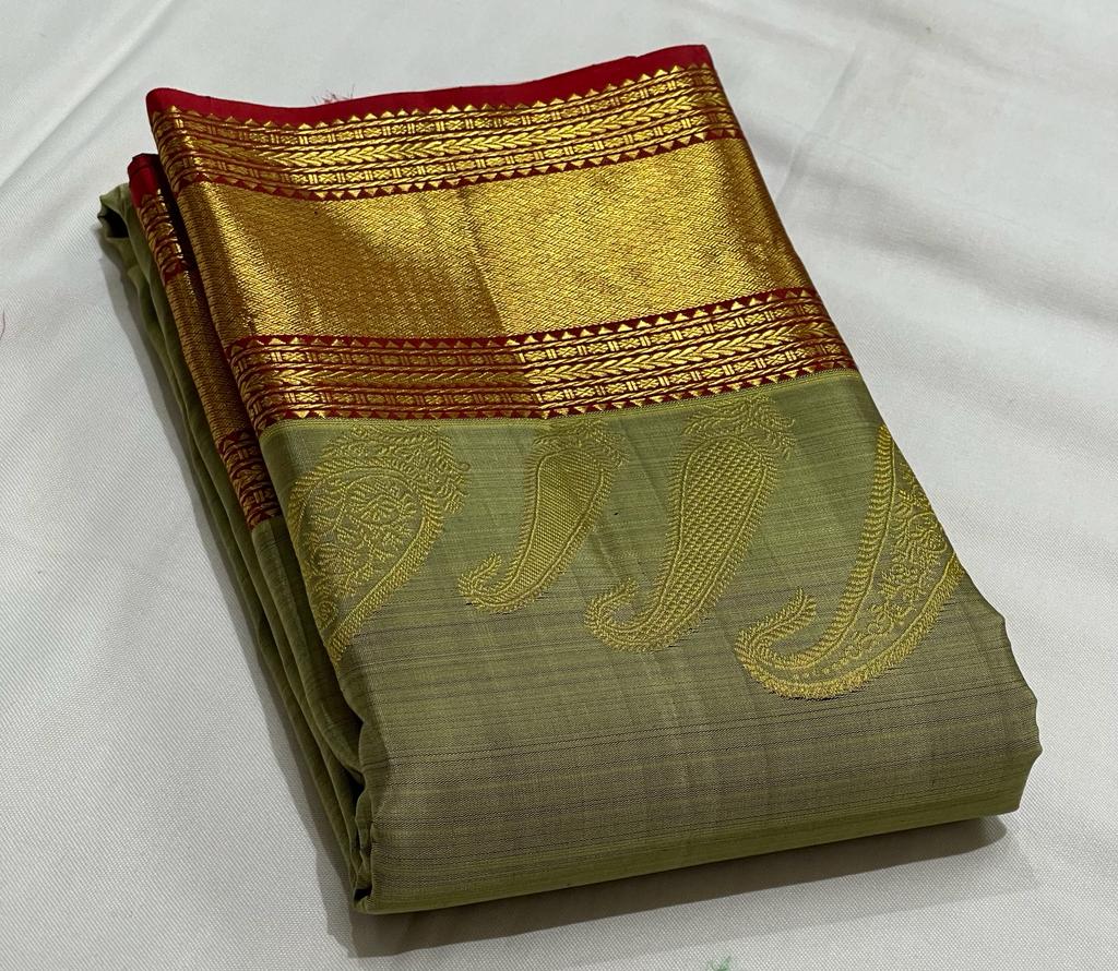 100 % pure kanchi silk saree handloom Double side korvai border ( Kuttu joint border 4 hands...