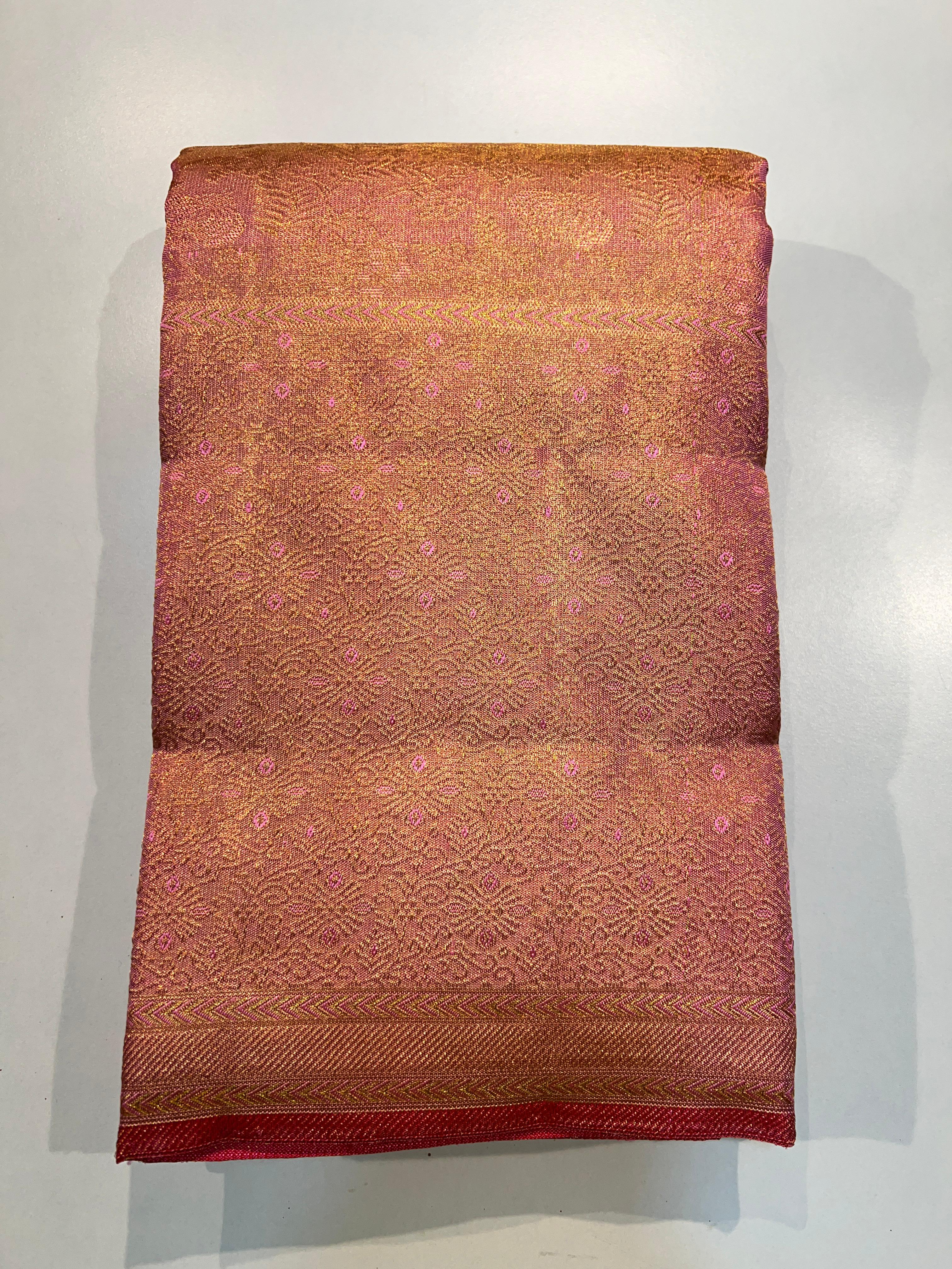 2 gram pure zari,Kanchipuram Handloom Tissue silk saree,Gold and Silver and antique copper zari traditional pattern on...