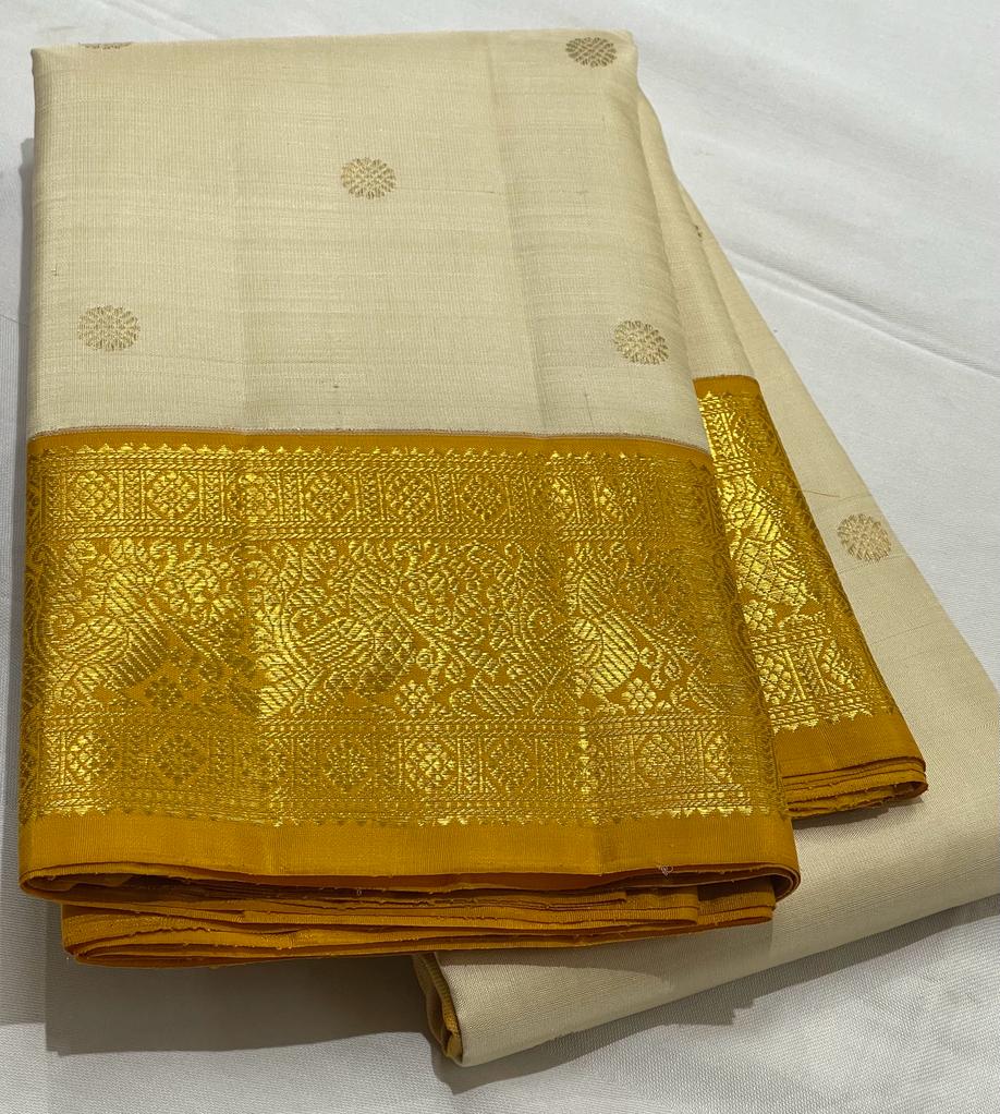 100 % pure kanchi silk saree handloom Double side korvai border ( Kuttu joint border 4 hands...