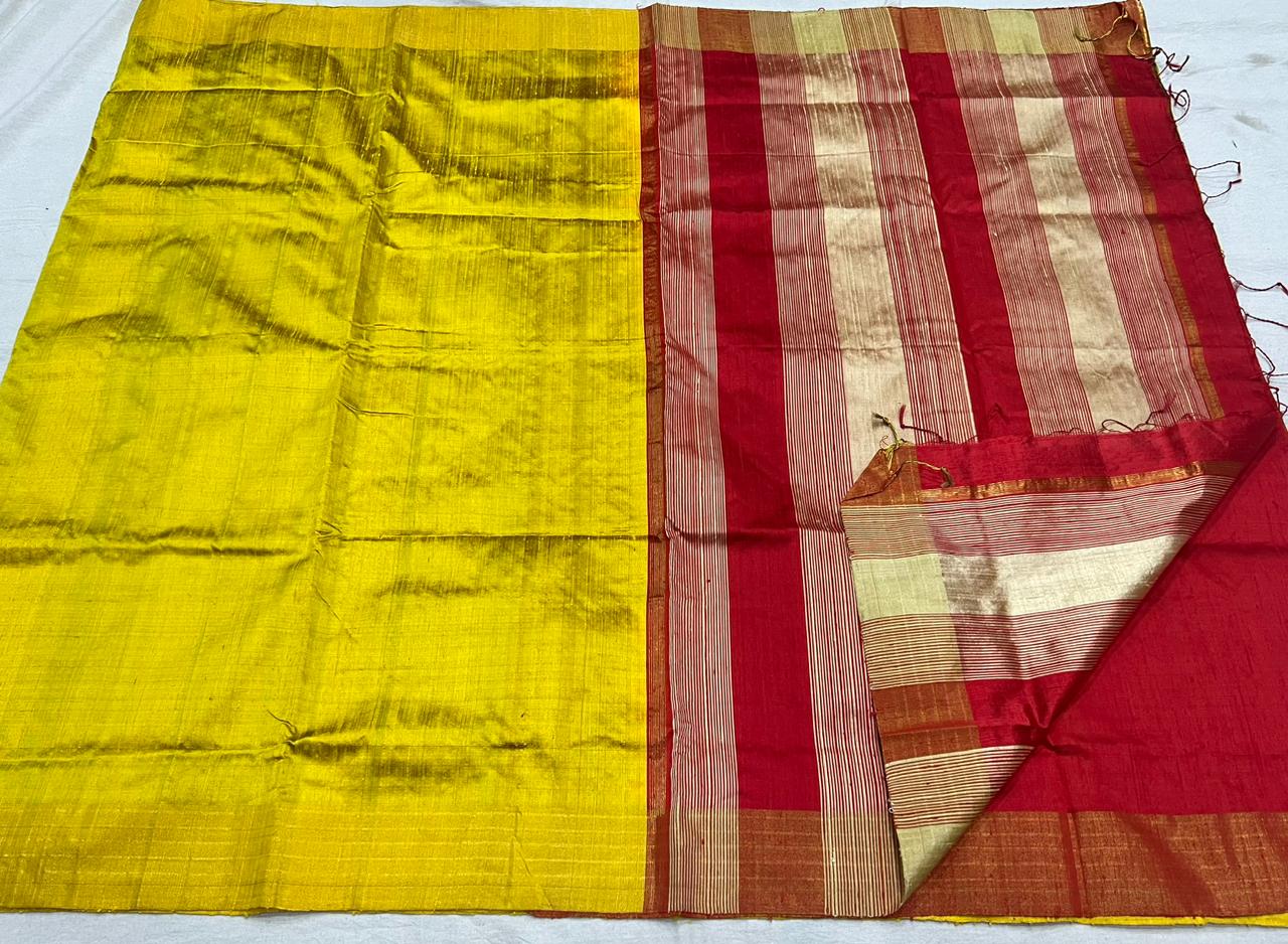 YELLOW / RED SIMPLE TUSSAR SILK SAREE