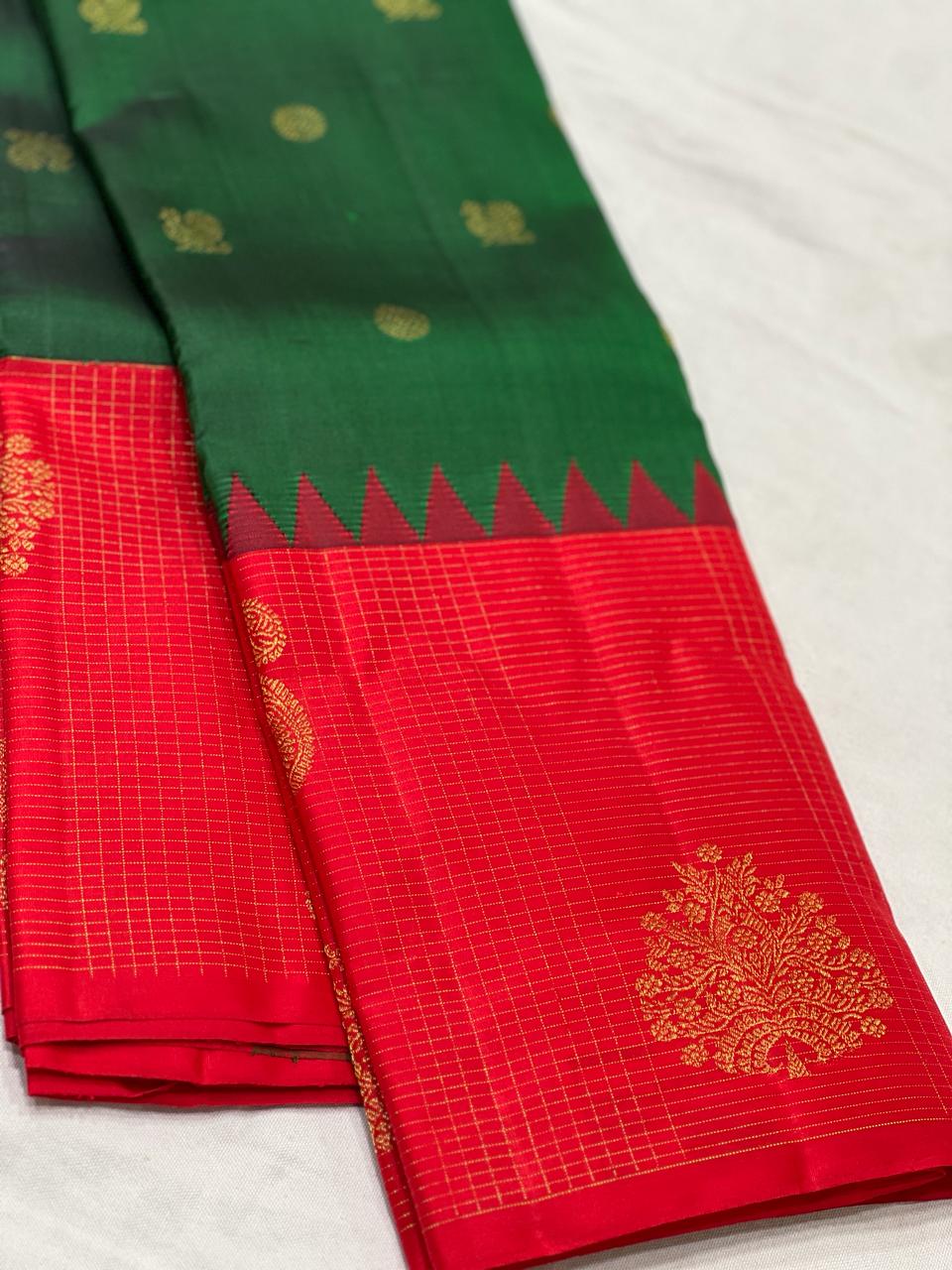 100 % pure kanchi silk saree handloom with double -side korvai border ( Kuttu ) 4 hands...