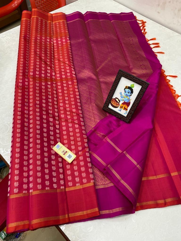 Pure kanchipuram handloom silk Handwoven100% pure handloom beautiful all over saree peacock weaving silk (pattu) buttas With...