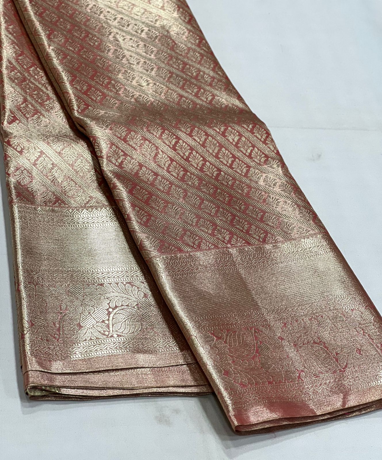 PINKISH RED KANCHI TISSUE SAREE