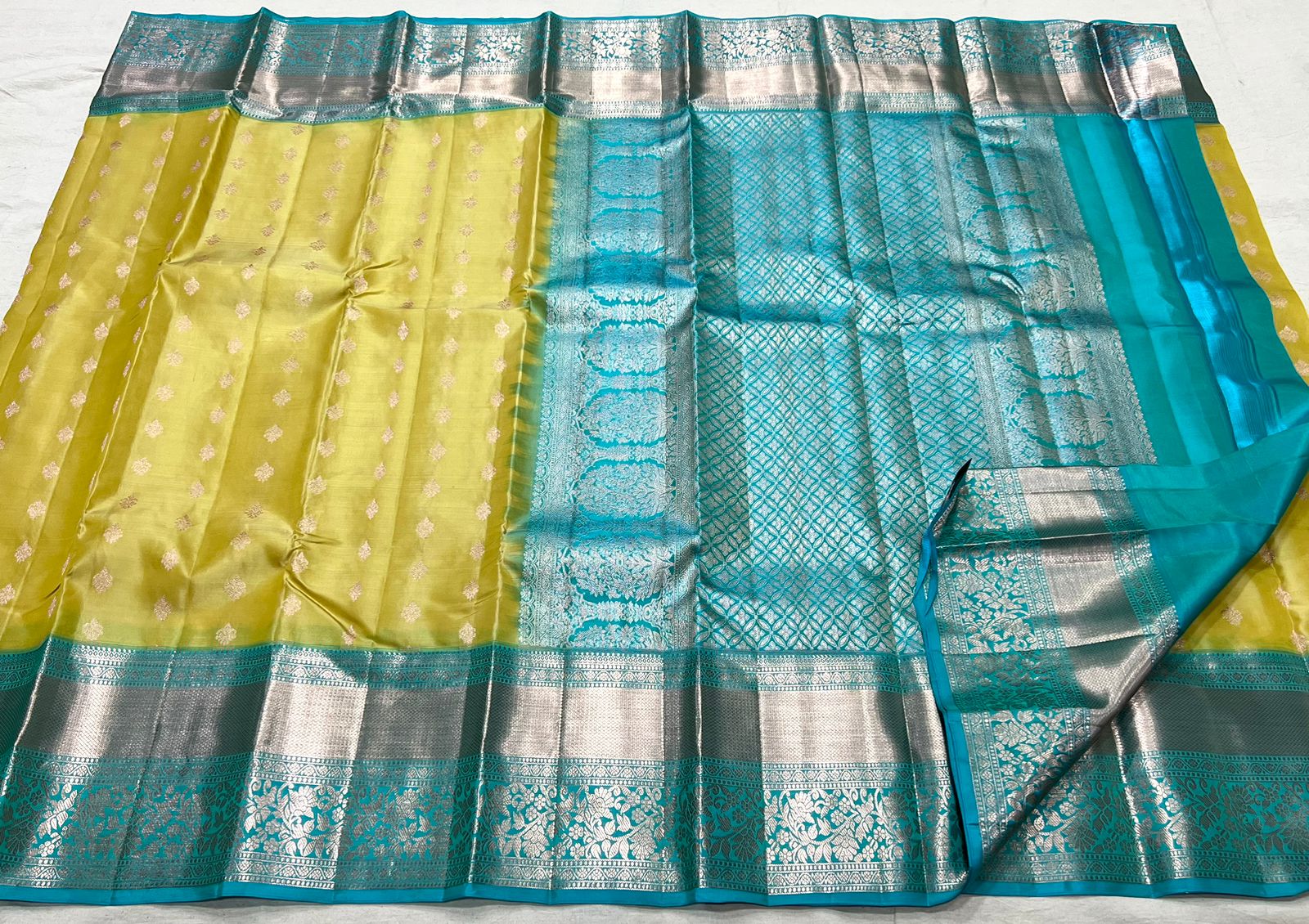 YELLOW / ROYALE BLUE KANCHI SILK SAREE