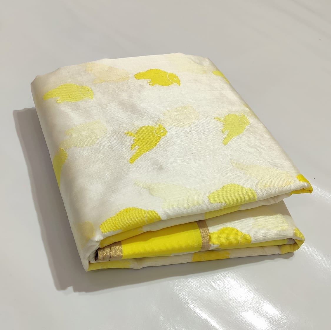 HALF WHITE / YELLOW CHANDERI SILK , ZARI BORDER SAREE