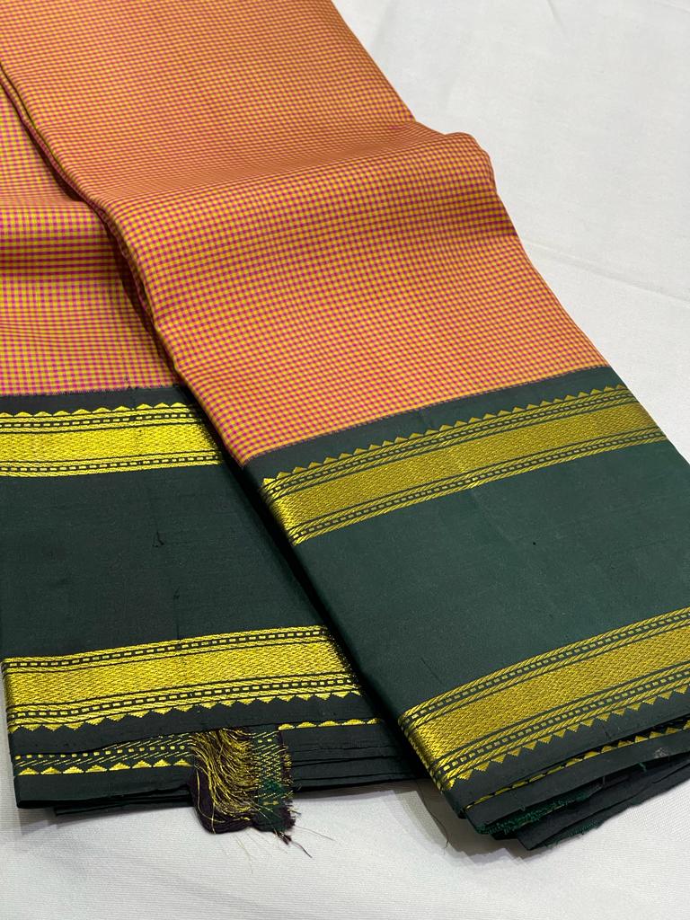 pure zari,Kanchipuram Handloom silk saree in gold zari,Buttis on body,Grand Pallu,Plain blouse.