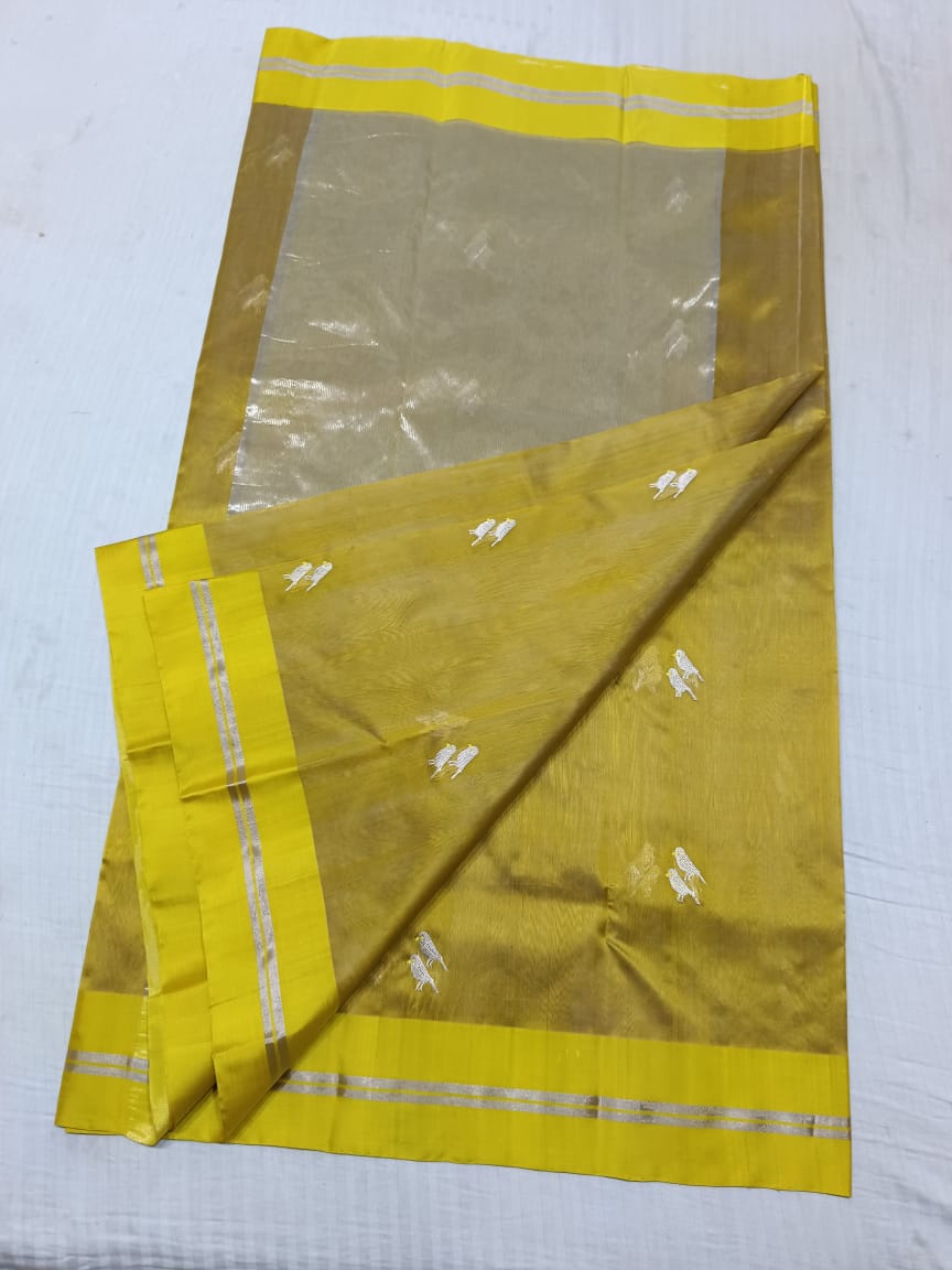 CHANDERI SILK, SILVER BIRDS DESIGN ALL OVER SAREE..