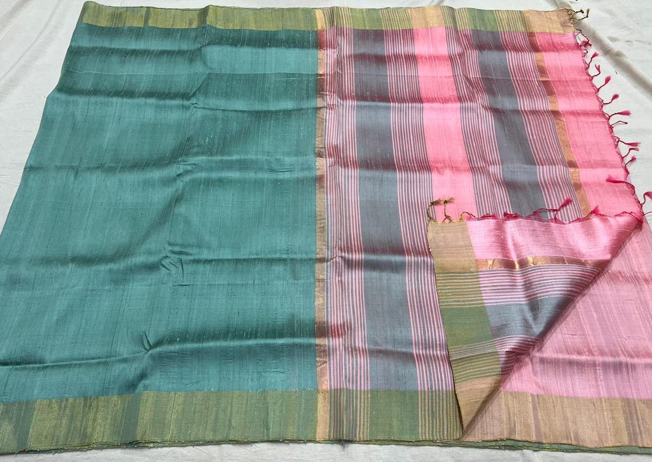 MINT GREEN / PINK SIMPLE TUSSAR SILK SAREE