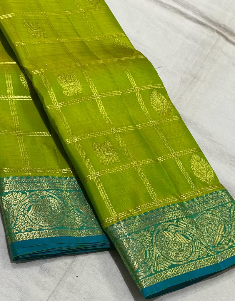 PARROT GREEN/RAMA BLUE COMBITION PURE KANCHI SILK SAREE