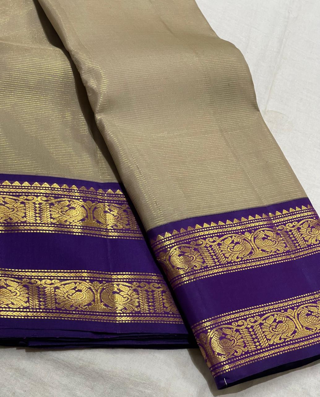 BISCUIT/VOILET COMBITION PURE KANCHI SILK SAREE