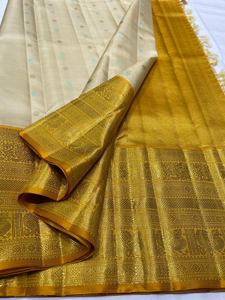 CREAM / YELLOW BRIDAL KANCHI SAREE
