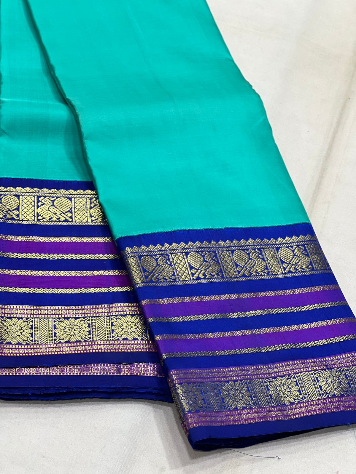 SKY BLUE/ROYAL BLUE BORDER COMBITION PURE KANCHI SILK SAREE