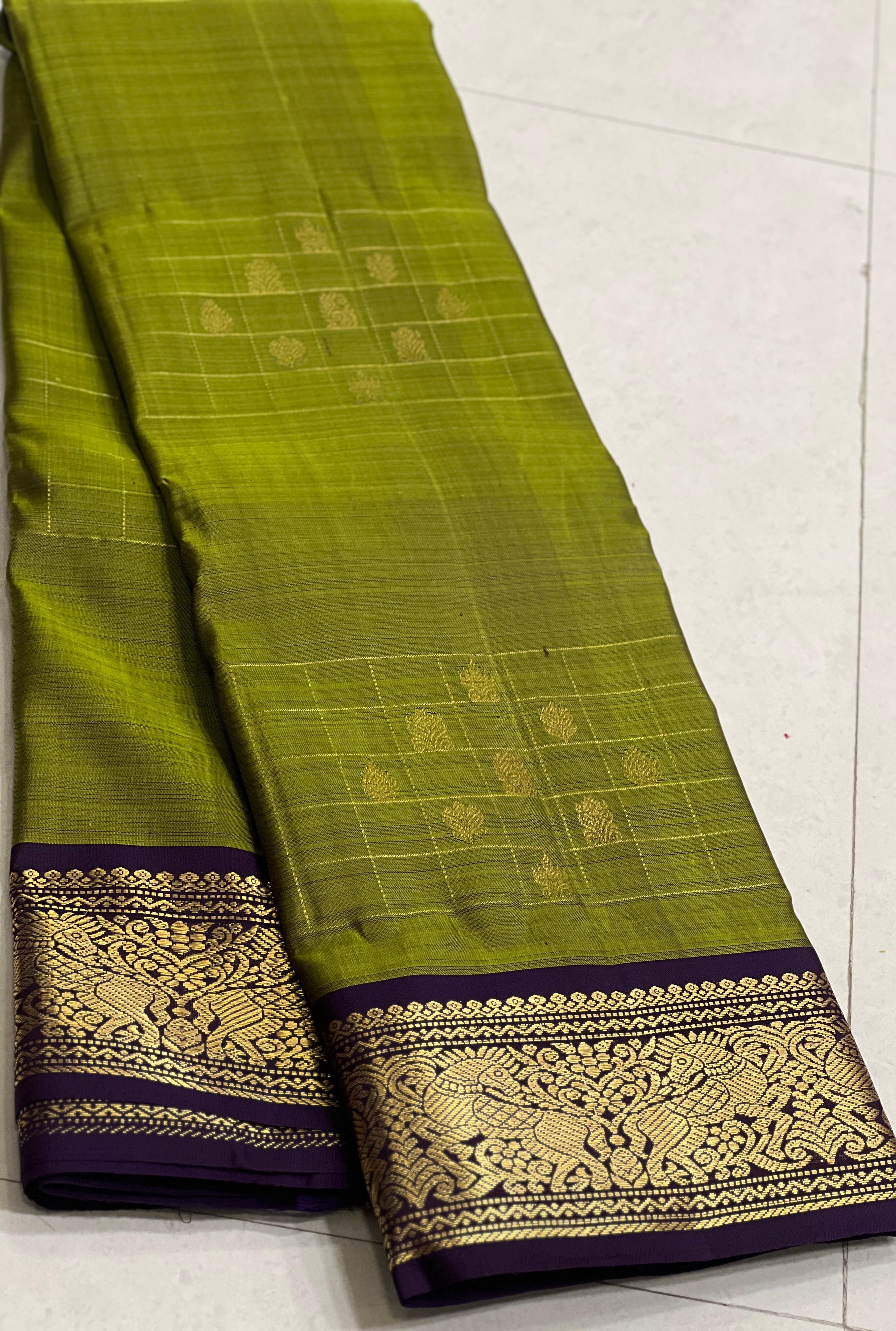 GREEN/VOILET COLOUR ZARI COMBINITION PURE SILK SAREES