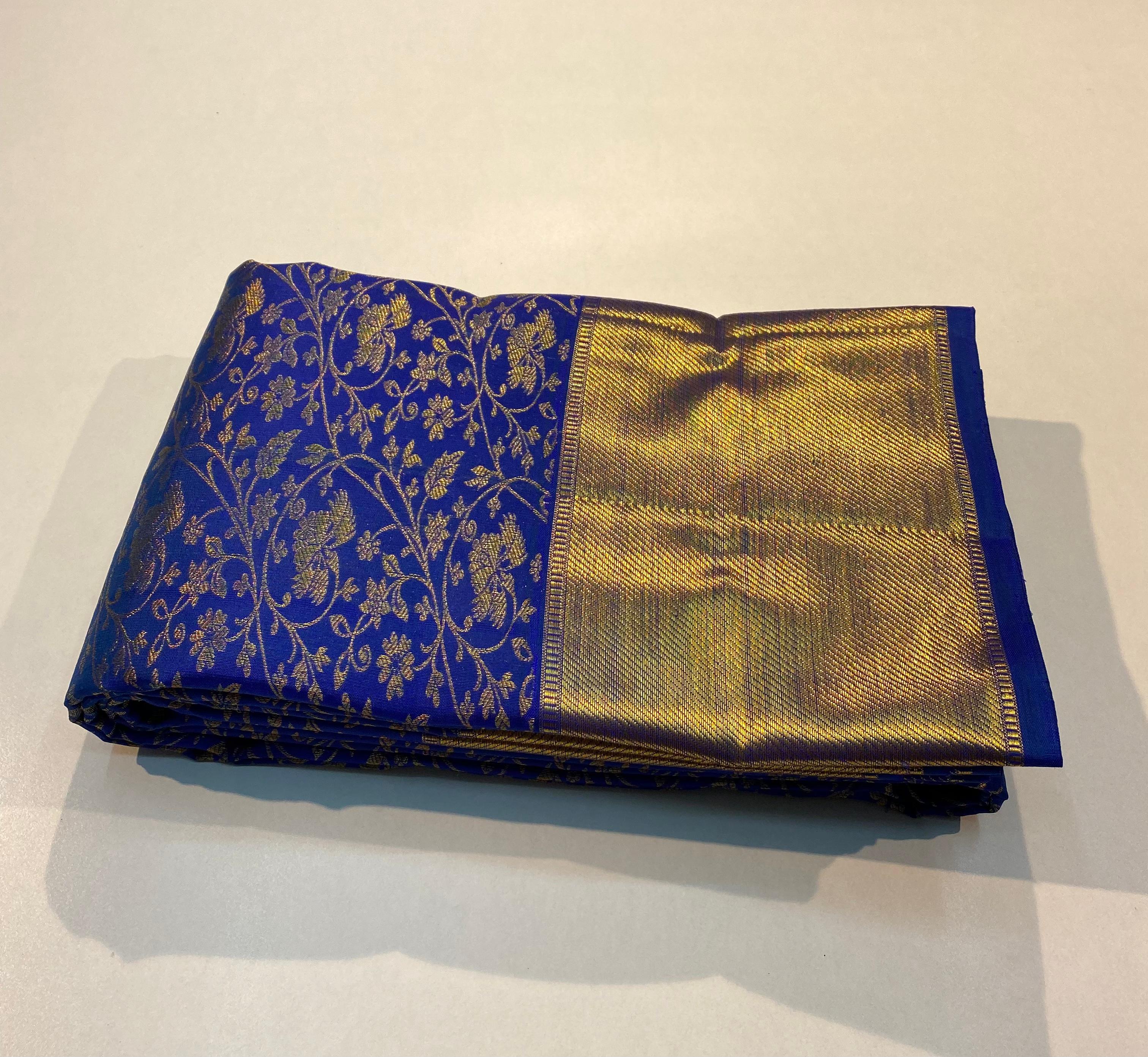 ROYAL BLUE COLOUR ZARI BORDER COMBITION PURE KANCHI SILK SAREE