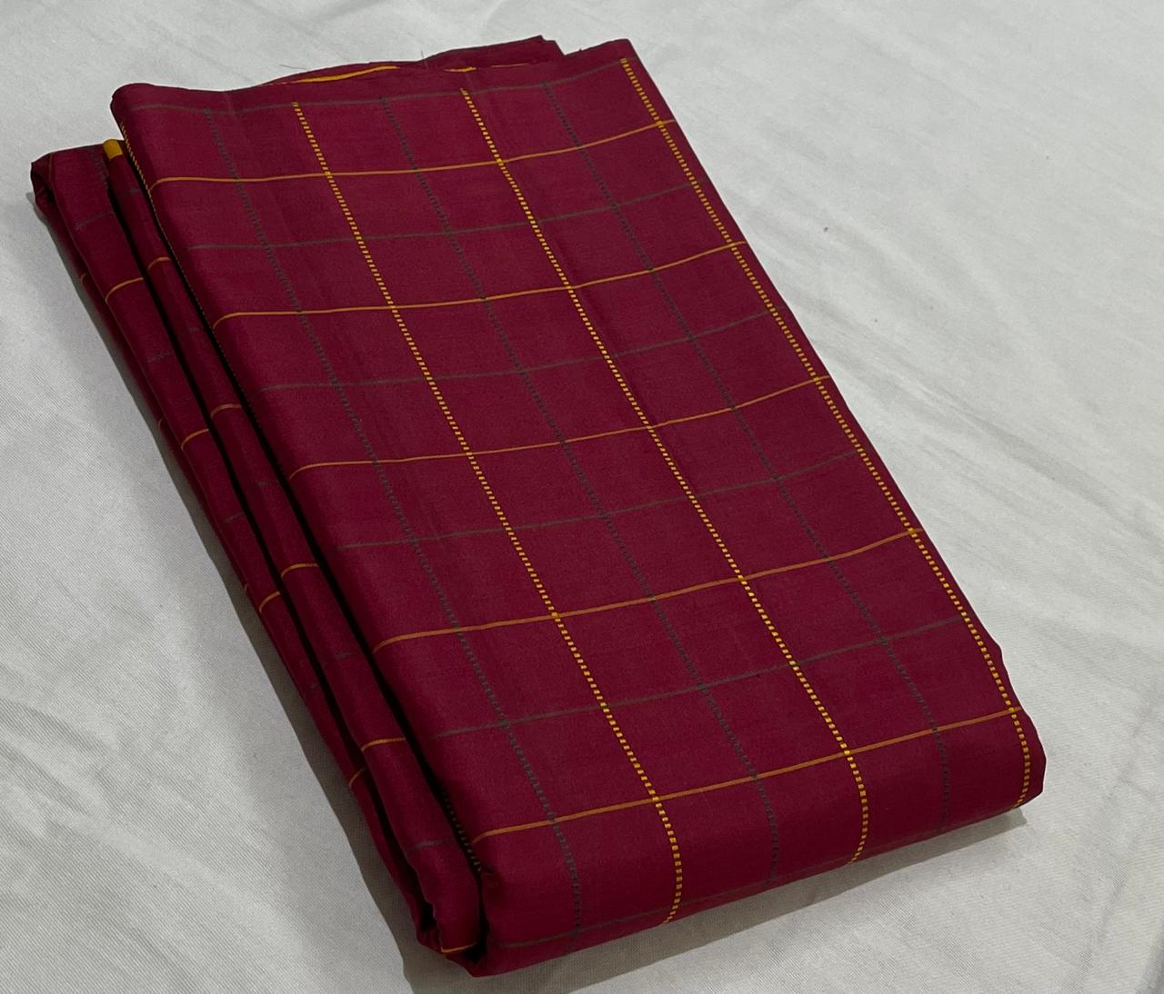 DARK RED & YELLOW COLOUR CHECKS \ CLASSIC BORDERLESS KANCHI SILK SAREE