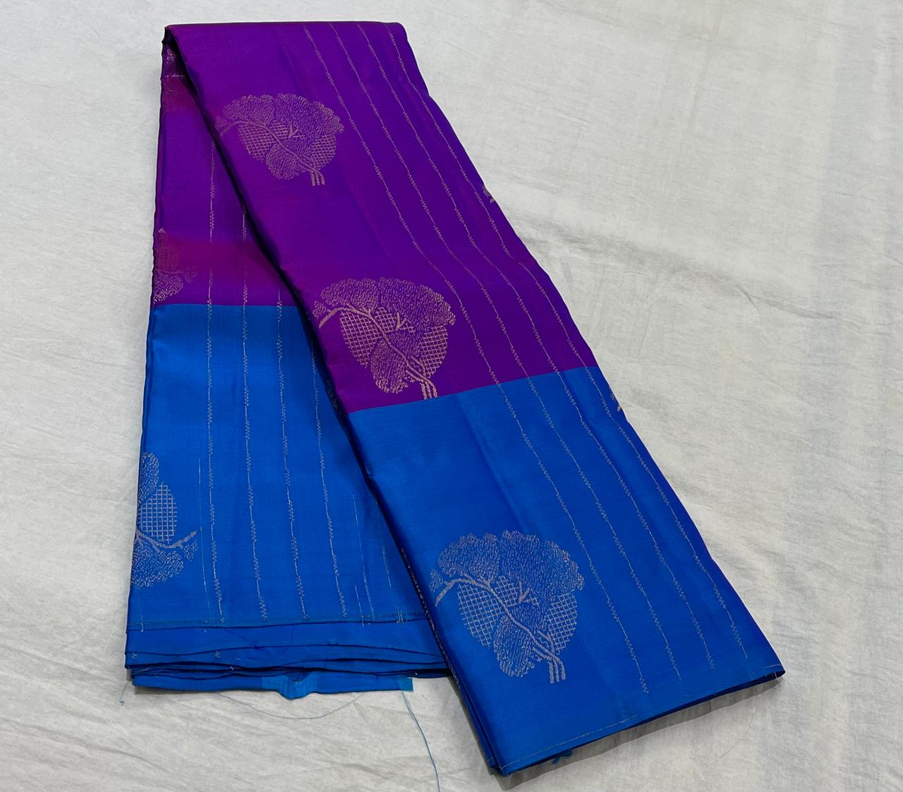 PURPLE/ROYAL BLUE COLOUR COMBITION PURE KANCHI SILK SAREE