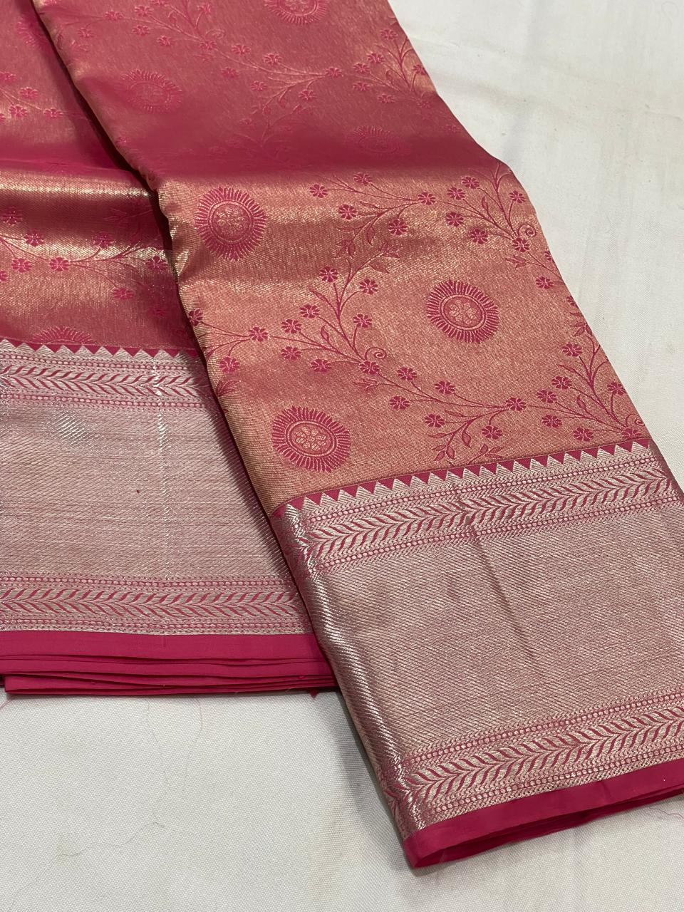 MAGENTA PINK BORDER COLOUR COMBITION PURE KANCHI SILK SAREE