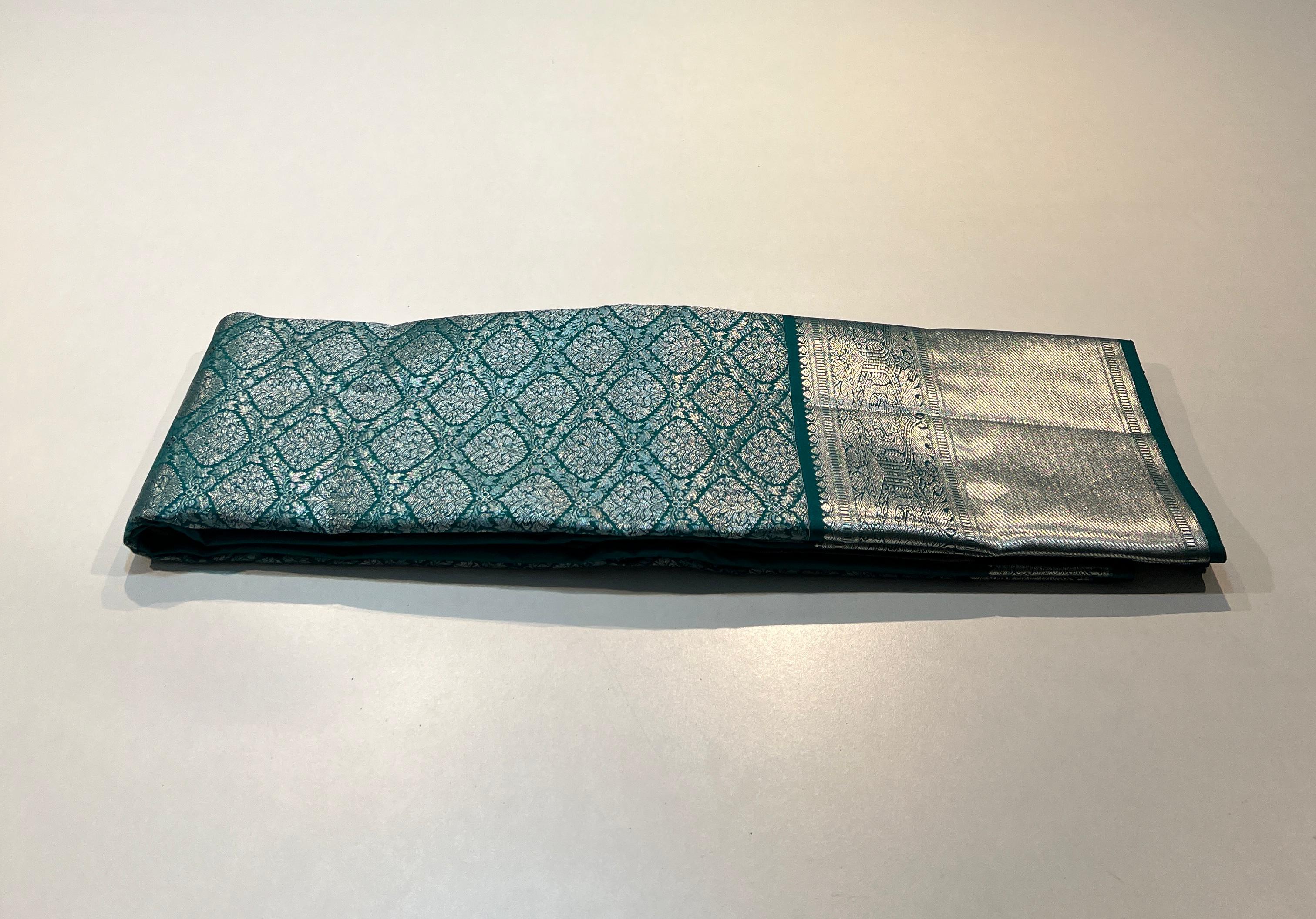 EMARALD GREEN WITH SILVER ZARI KANCHI SILK SAREE