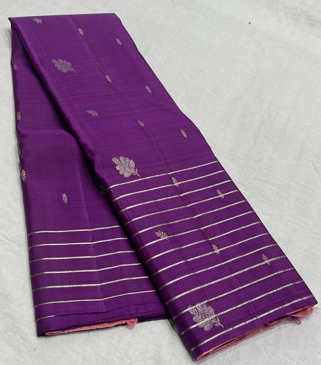 PURPLE/PEACH BORDER COMBITION PURE KANCHI SILK SAREE