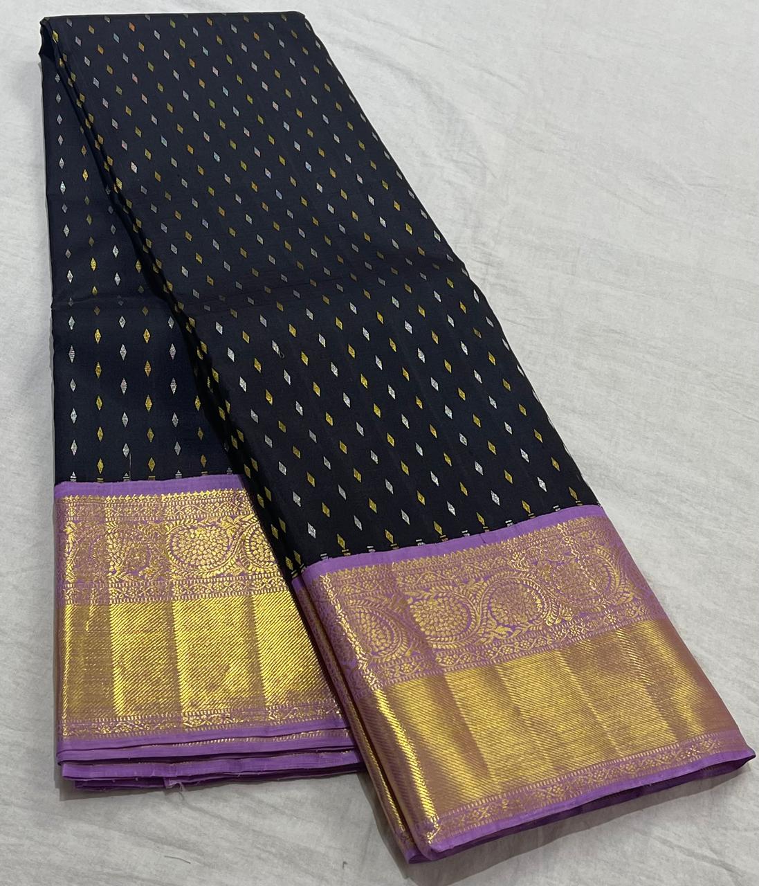 BLACK/LILAC COMBITION PURE KANCHI SILK SAREE