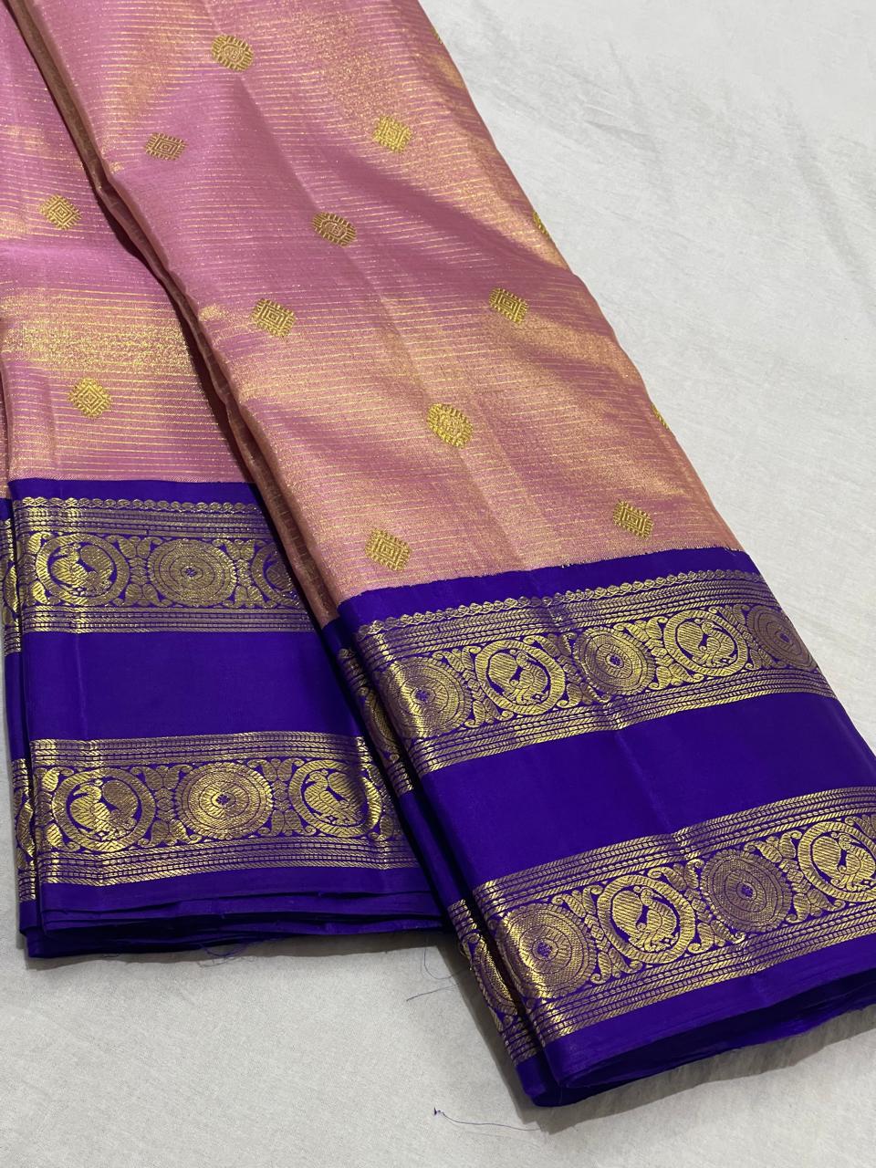PEACH/VOILET COMBITION PURE KANCHI SILK SAREE